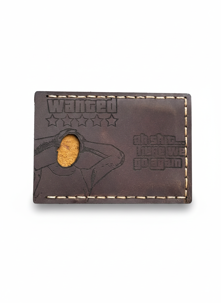 Relive the iconic legend of San Andreas every time you show your ID. Whether you're getting stopped by the authorities or just entering a restricted zone, this handcrafted leather cover turns your document into a 5-star "Wanted" level statement.